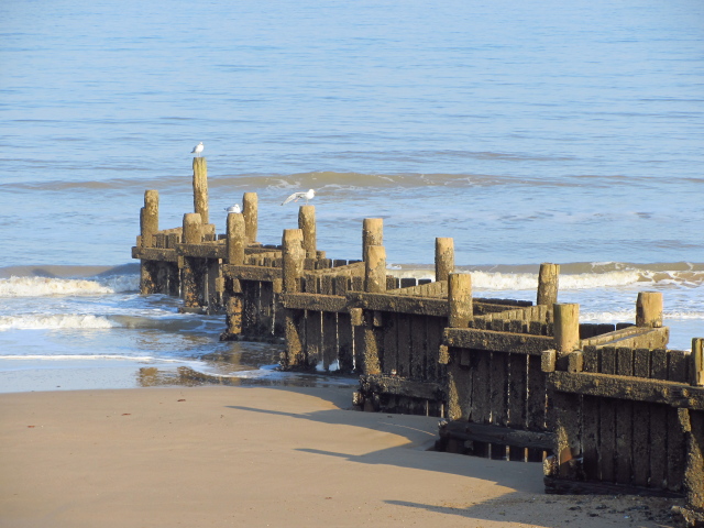 | A sea wall along the beach. Presumably these are meant to help keep the beach in place and try to reduce erosion of the cliffs. |