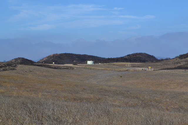 The predicted temperatures inland range right up to 100°F, but on the coast there are still areas expecting a nice 70°F. Being somewhat suspicious of the predictions, I pack enough water for hiking in over 80°F temperatures and decided to climb Boney Mountain from the Thousand Oaks side. The area has been recently burned and the weatherman isn't predicting for the mountain top, so I wasn't going to take any chances with the precious liquid. Normally, a recent burn would put an area off limits, but the relevant agencies have decided that all may continue to use the land as long as they stay on established trails and keep to the hours of sunrise to sunset. There is danger from fire smoldering inside trees, but this can be carefully checked for along the trails and there are a few reasons to invite the public back onto the land.