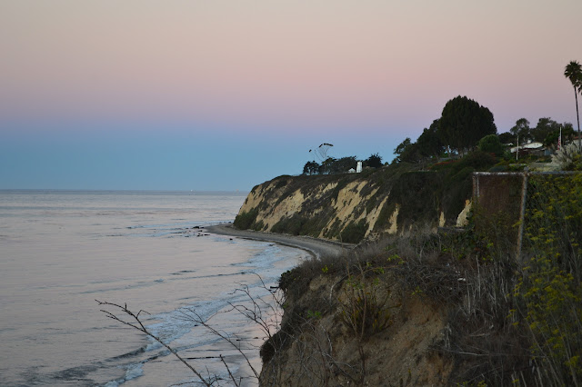 | Out on the point above Arroyo Burro, the ocean is picking up that blue that we generally see throughout a sunny day. UCSB is visible today way out there. |