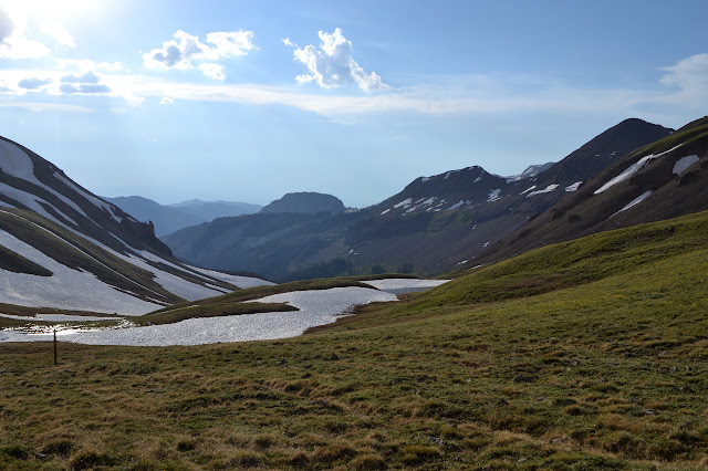 We all check out where we are going. After a rest day, my brief companions will go up Mount Sneffels. I have the closer valleys to navigate, which are surprisingly hard to see. It somehow seems to get more snowy down there.