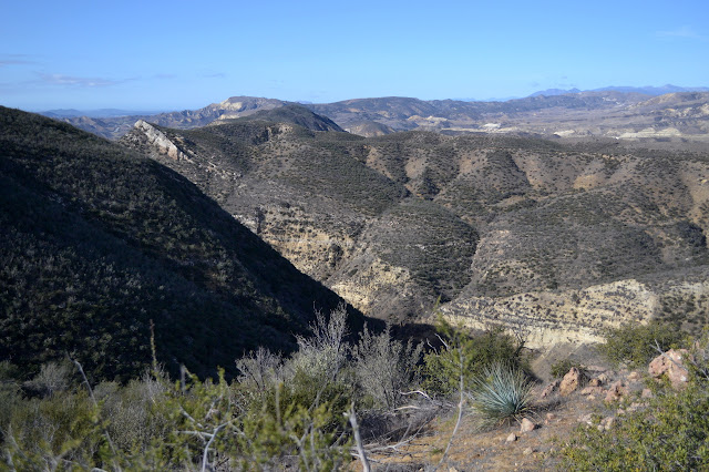 There seems to be quite a bit of hiking to the northeast of Simi Valley. For another foray into this territory, I have chosen another long loop with elements of canyon and ridge. This time, I am starting with the canyon so have arrived at the locked gate of the Las Llajas Trailhead at a break along the edge of a small house farm. There are a large number of other cars already here. Disappointingly, the road is paved. It drops gently down into the canyon past another paved road entering from the west. The pavement stops, for the most part replaced by mud, at the bottom before a second road enters from the west.