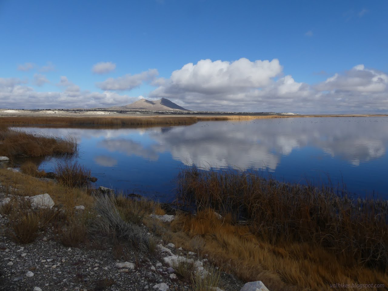 The plan for this day was to visit the three smaller, further reservoirs starting with the furthest. It had rained heavily overnight and even the main road felt a little off, but I was really regretting leaving the driving to after the rain when I got to the last two miles to the Tule Reservoir Dam. After the turnoff for Haymeadow Reservoir, the road becomes narrow and lesser maintained. The turnoff for Tule Reservoir is so rough that I pulled out of the way of traffic at the corner and walked it. There's lots of room for parking at the intersection even though it is not marked as an official parking area on the reserve's map.