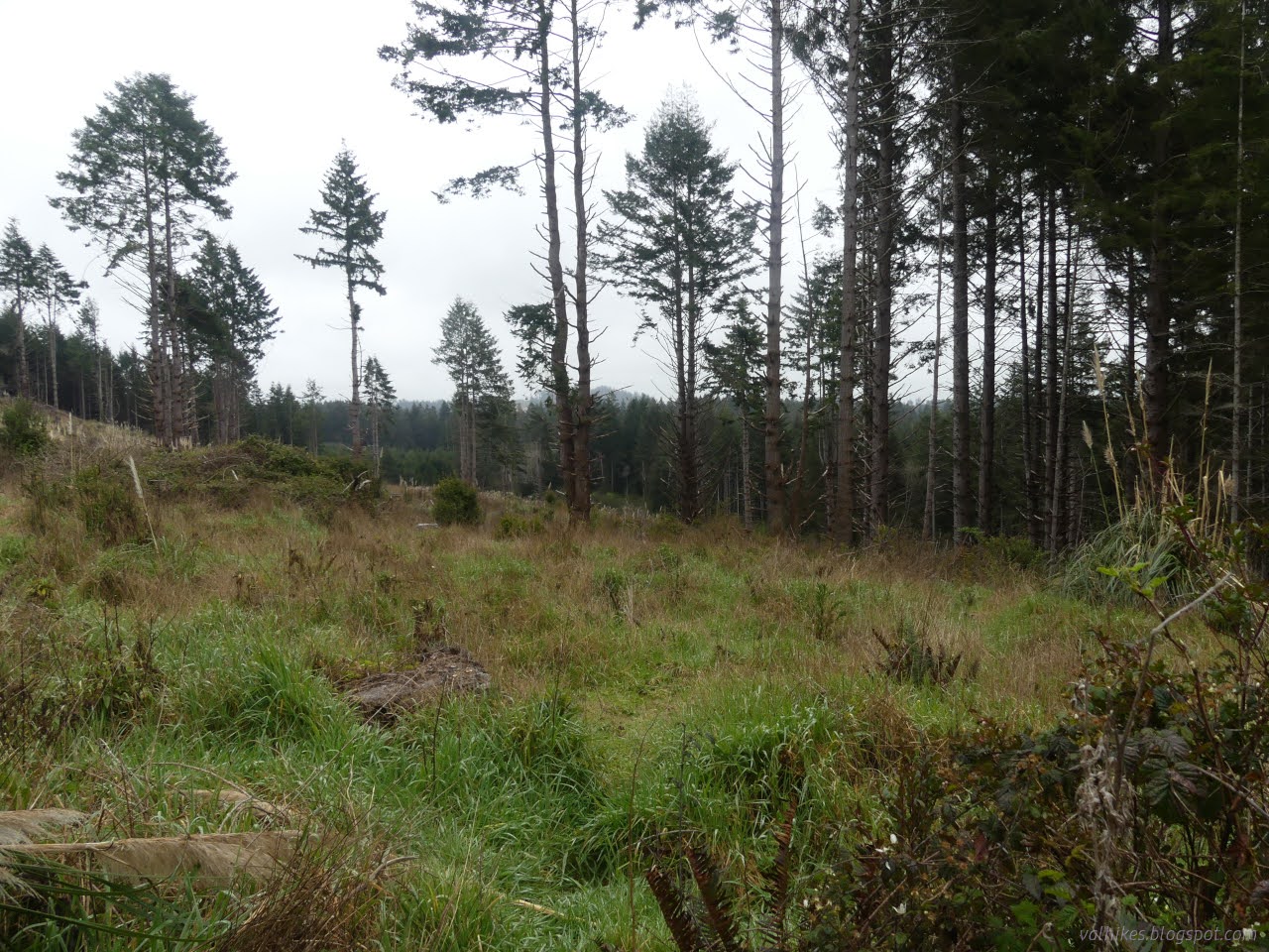 McKinleyville closed escrow on their 599 acre community forest on 31 January and McKinleyville Community Services District, in whose hands that ownership and operation now resides, says the public may come and walk and ride bikes and probably even a horses. (Someone certainly has given it a try.) There are two undeveloped entry points along Murry Road to use for this access and other entry points are planned. They add that the Green Diamond Resource Company lands to the east of the forest are still closed to the public. I spent a little time with OpenStreetMap, a Strava heat map overlay, and their printable georeferenced pdf map to determine (and mark) what, exactly, was open and what was not. I also spent some time with the McKinleyville Community Forest Framework Plan and wasn't exactly sure what to expect. A little disturbing is that Green Diamond apparently went and logged three big chunks of this land between when they approached the city about maybe buying it and when they actually sold it. This early first day of spring wasn't really the best day for it, being overcast and expecting to stay that way, but the next few days were claiming the same. I went for it. Zero chance of rain at least.